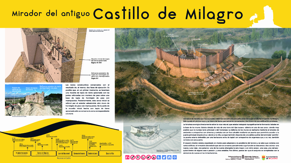 Laura Elvira Tejedor, arquitecta encargada del proyecto, nos solicitó realizar el diseño de los paneles que se encuentran en el recorrido que se ha adecuado en el proyecto del Castillo de Milagro y su entorno.